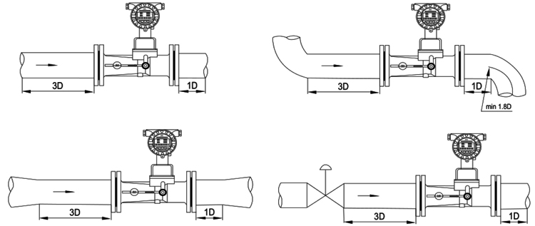 2、流量计可水平、垂直或任意角度倾斜安装。