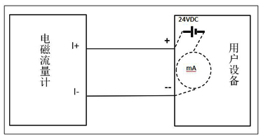 ① 一体电磁流量计有源4-20mA输出接线(一体电磁流量计默认情况下是有源4-20mA用户设备电流表不能有电源输出) |
