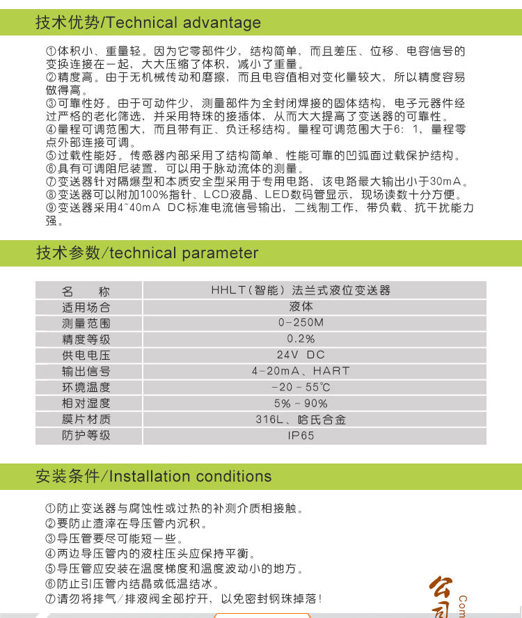 体积小、重量轻;精度高,可靠性好,过载性能好;具有可调阻尼装置,可以用于脉动流体的测量;变送器采用4~20mA DC标准电流信号输出,二线制工作,带负载、抗干扰能力强。...